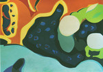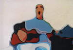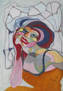 Imaginair blauw portret beetje onwennig rondkijkend. Giclee opgerold verpakt in koker inclusief gesigneerd certificaat. Oplage 30 stuks.